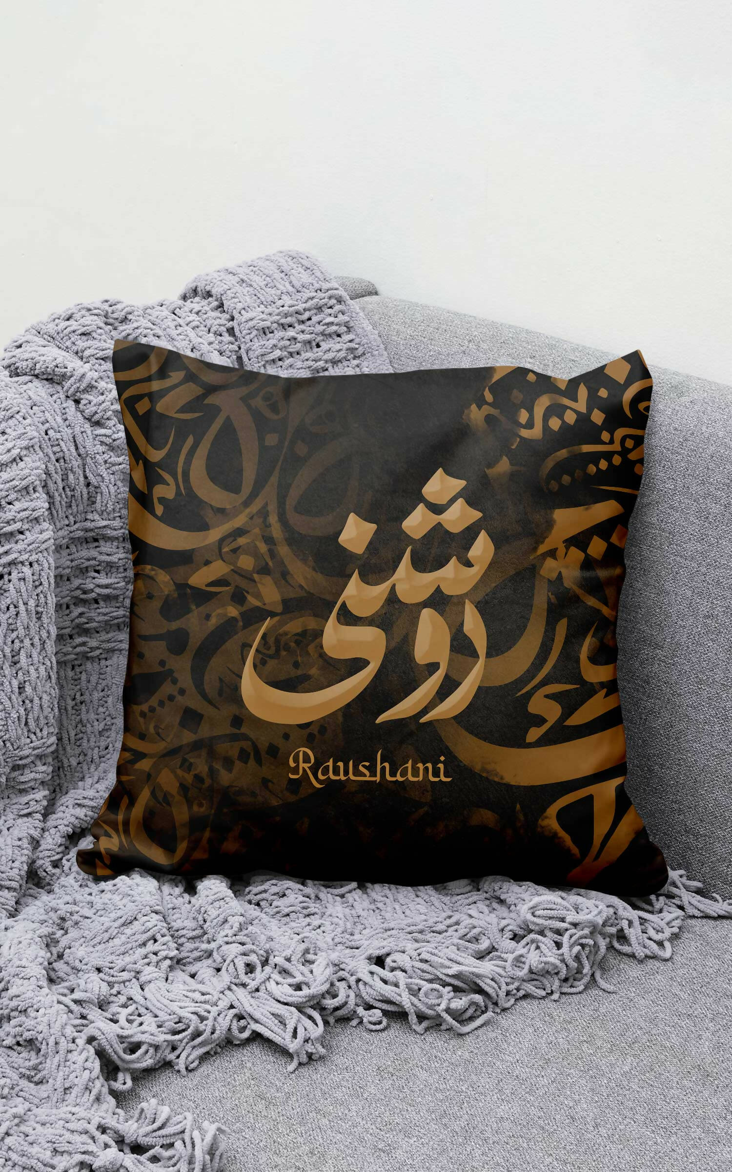 'Raushni' Cushion Cover Calligraphy on Holland Velvet - 16X16 (Urdu & English)