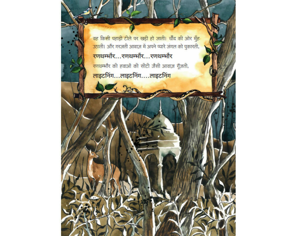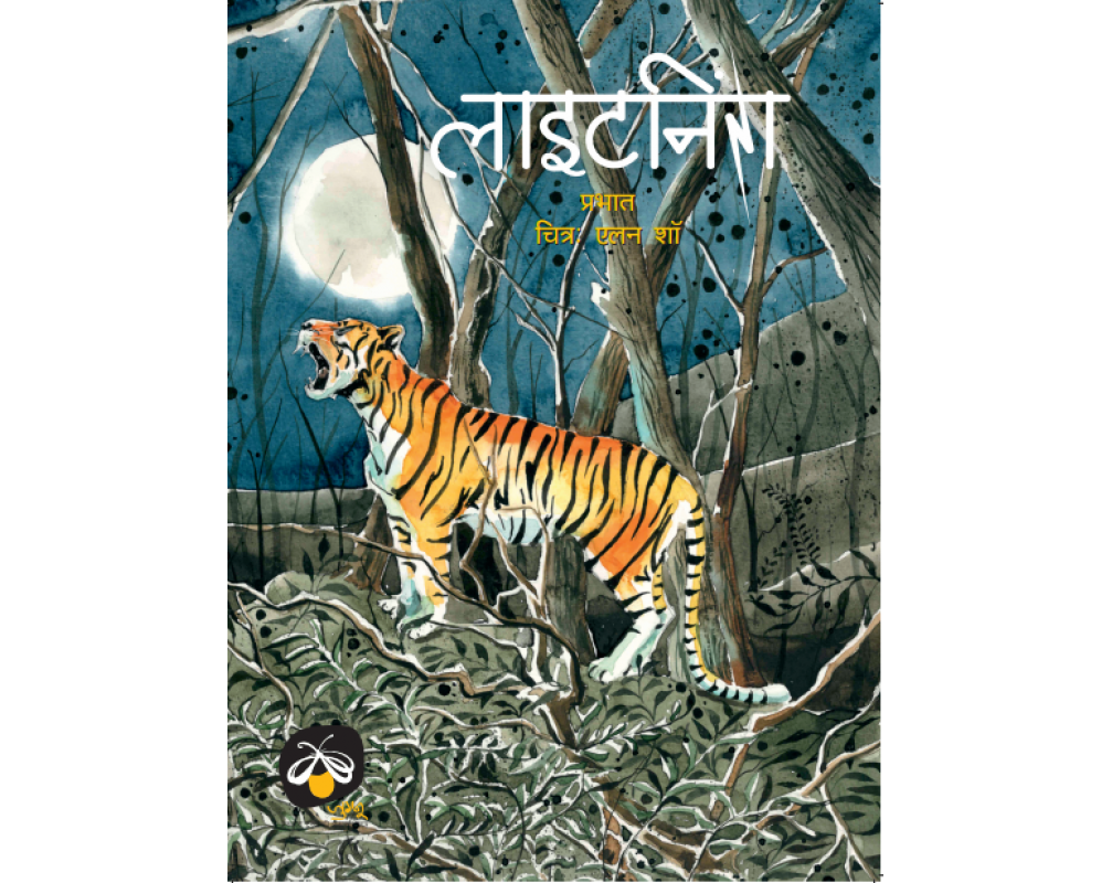 Lightning is a story of a tigress of Ranthambore. Of the numerous anecdotes about her, Prabhat has chosen one that reflects the togetherness of human beings and wild animals. Sensitively portrayed, the story shows that together Lightning and the people make Ranthambore the place that it is.उगता सूरज-डूबता सूरज। वहाँ की रात है और रात का चाँद है और लाइटनिंग है।वह बोलती है तो पूरा जंगले बोल पड़ता है। सबको लगता है कि लाइटनिंग इस बार उनसे कुछ कह रही है।Allen Shaw has illustrated the book. The book is painted with watercolors. Its bright colors would surely attract you.