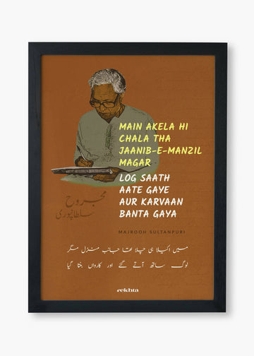 Quotes Wall Posters with Frame for Home and Office of Majrooh Sultanpuri : Main Akela hi chala tha